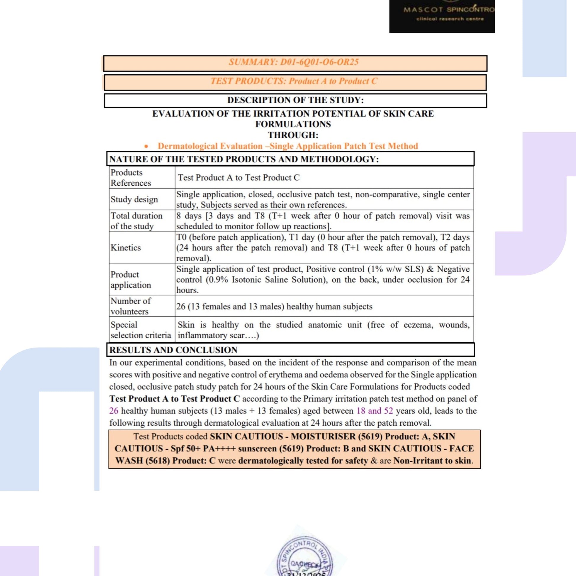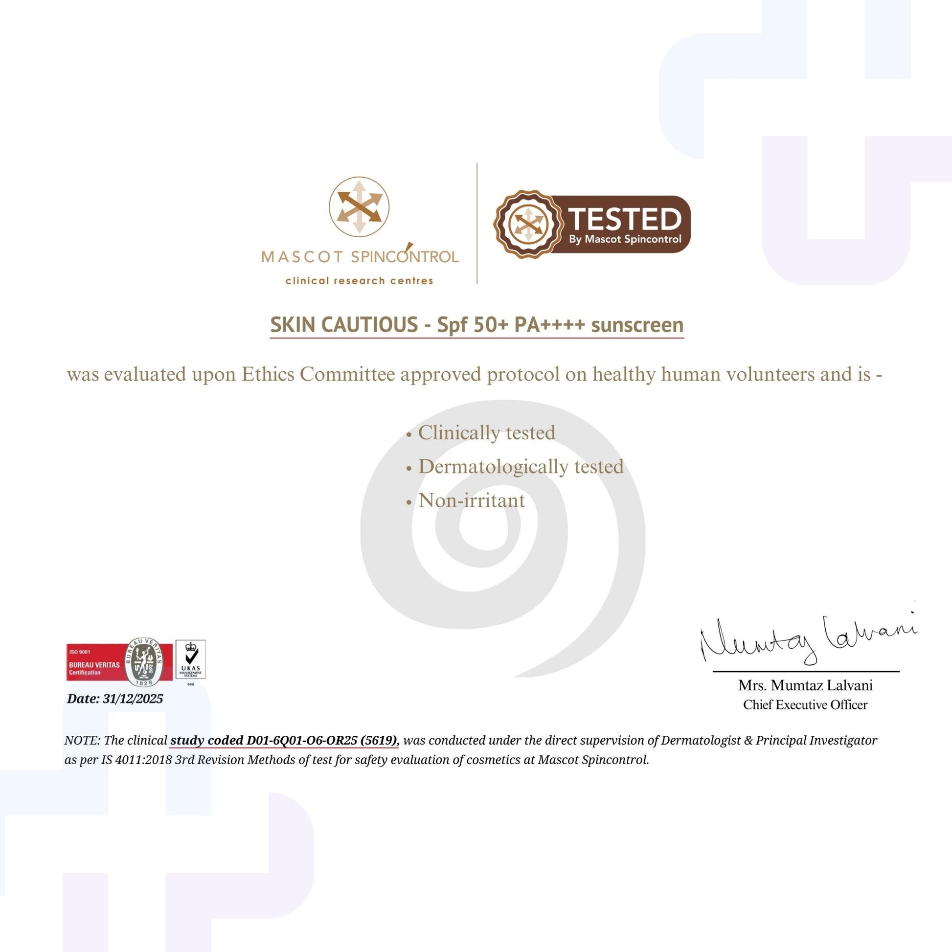 Skin Cautious The Sunscreen SPF50+ PA++++ is your ultimate daily shield against the sun and the city. Powered by innovative CityBlock PM2.5 Technology, this advanced formula goes beyond ordinary sunscreens by offering both Pollution Block and Dust Block protection, keeping your skin safe from environmental aggressors. It effectively blocks harmful UV-A and UV-B rays, making it ideal for everyday outdoor use. Enriched with Niacinamide, Moringa Extract, and Vitamin E, it nourishes and supports healthier-looking skin with consistent use — visible results can be seen in as little as 28 days. The lightweight, non-greasy formula leaves a smooth finish with absolutely no white cast, making it suitable for all skin types. Both in-vivo and in-vitro tested, and recommended by dermatologists, this 50g sunscreen is the hero your skincare routine has been waiting for.